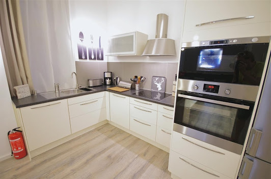 Bereite es zu in der eleganten Küche dieses Pariser Apartments.