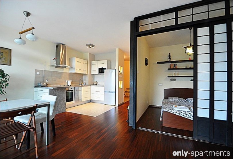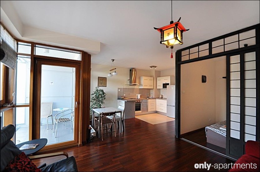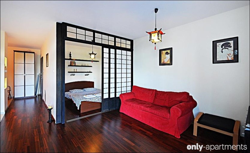 Warschau ist eine weitere Möglichkeit. Hier befindet sich dieses authentische Apartment mit japanischen Lampen und einer Parkmöglichkeit, um euer futuristisches Auto unterzustellen.