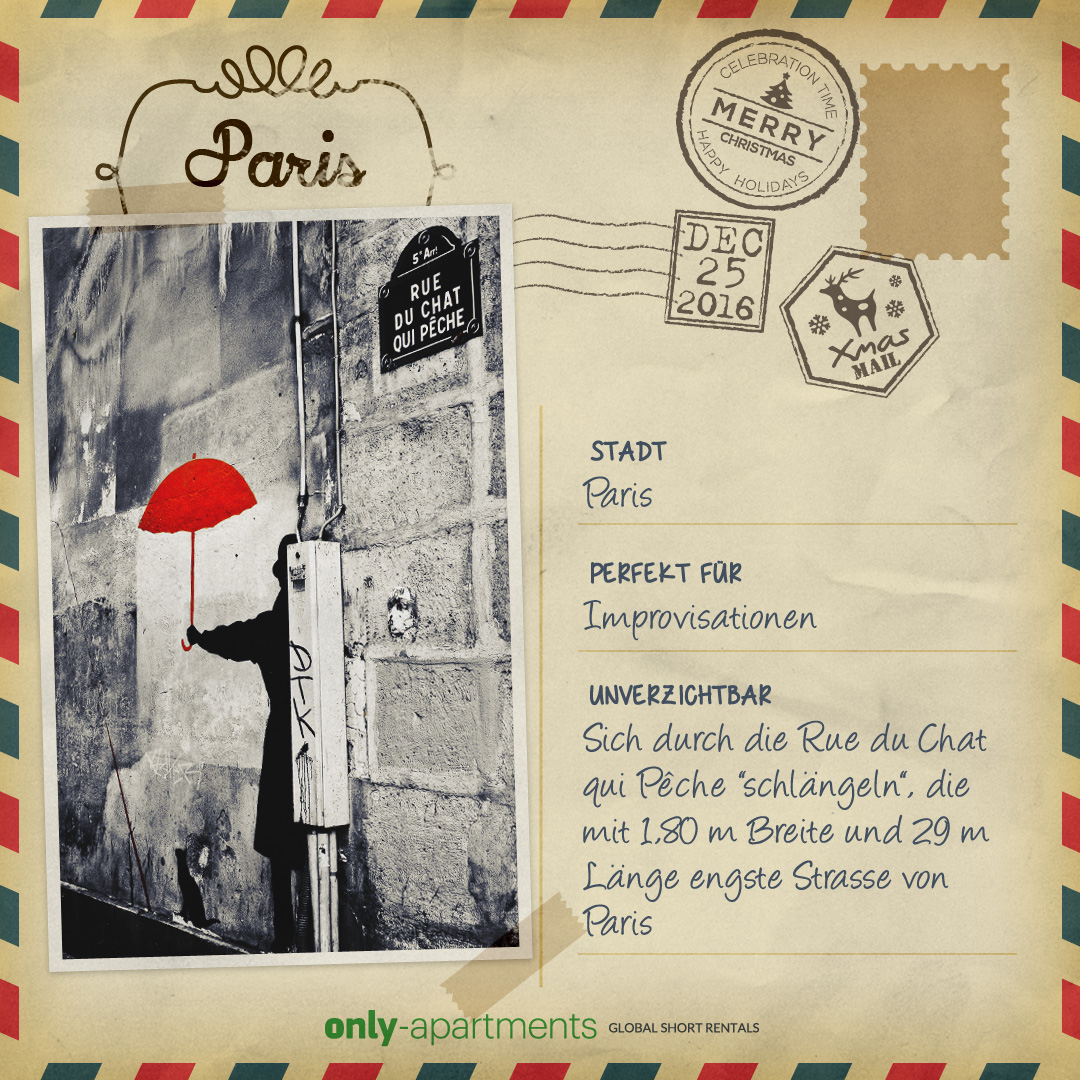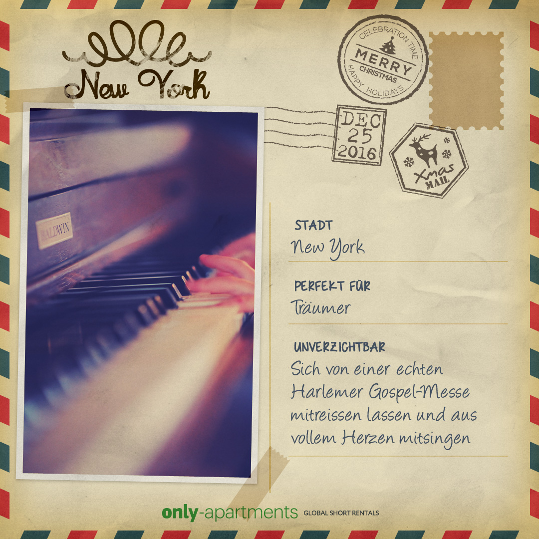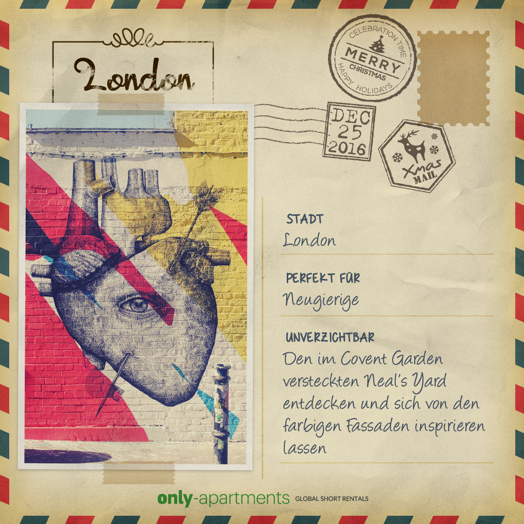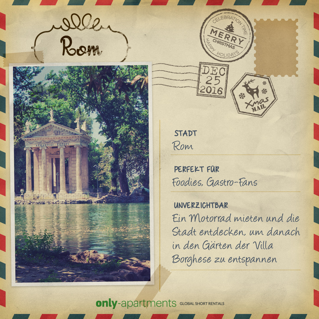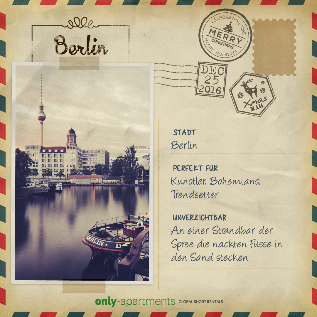 Um es euch so einfach wie möglich zu machen, haben wir spezielle Postkarten mit dem Besten aus jeder Stadt entworfen. Ihr könnt sie herunterladen und als Weihnachtskarte verschicken!